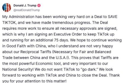 Παράταση 75 επιπλέον ημερών έδωσε ο Αμερικανός πρόεδρος Ντόναλντ Τραμπ στο TikTok, προκειμένου να βρει…